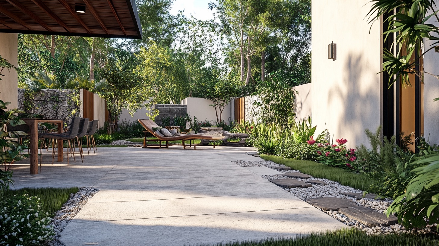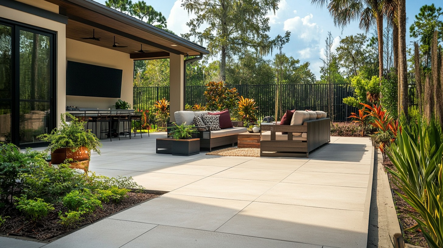 Travertine-style concrete is another popular choice, providing a slip-resistant surface that’s both stylish and functional.